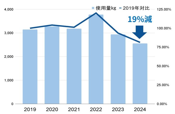 2024年には、初めて2019年対比で、19%削減と目標を大きく超えることができました。