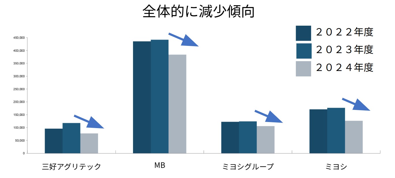 ミヨシグループの化学肥料削減実績の推移