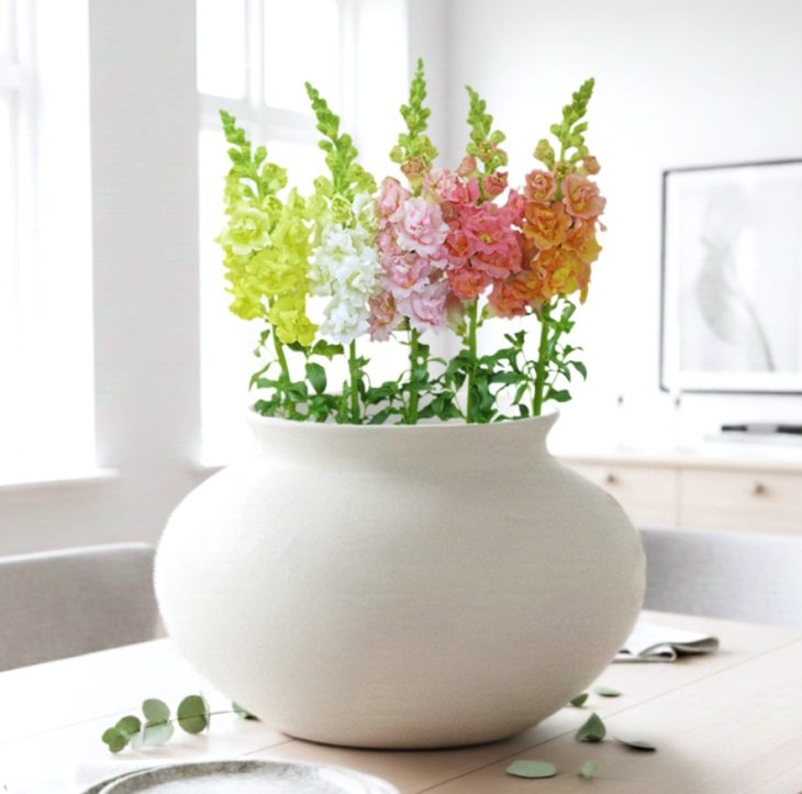 キンギョソウ「F1 さくらホイップ」は、八重咲き(多弁)タイプとしては珍しい品種で、その繊細なペールピンクのグラデーションと柔らかな質感、美しい縦ラインのフォルムが高く評価されました。