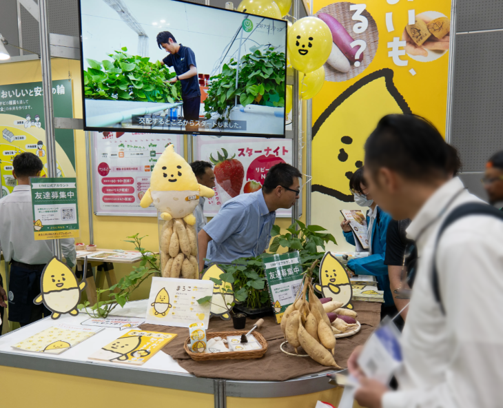ブースには、きみまろこの「イモ」に加え、苗やキャラクター関連の販促資材(シールや焼印等)の展示、動画の放映の展示をしました。