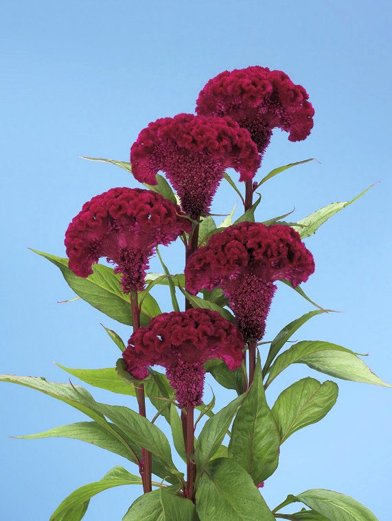 セロシア(ケイトウ) ケイトウはお盆~お彼岸向けとして馴染み深い品目です。和名で鶏頭と書き、その名のとおり鶏のトサカに似た形の花が特徴です。 近年では様々な形・色の品種が育種されており、アレンジメントや 花束としても広く流通しています。